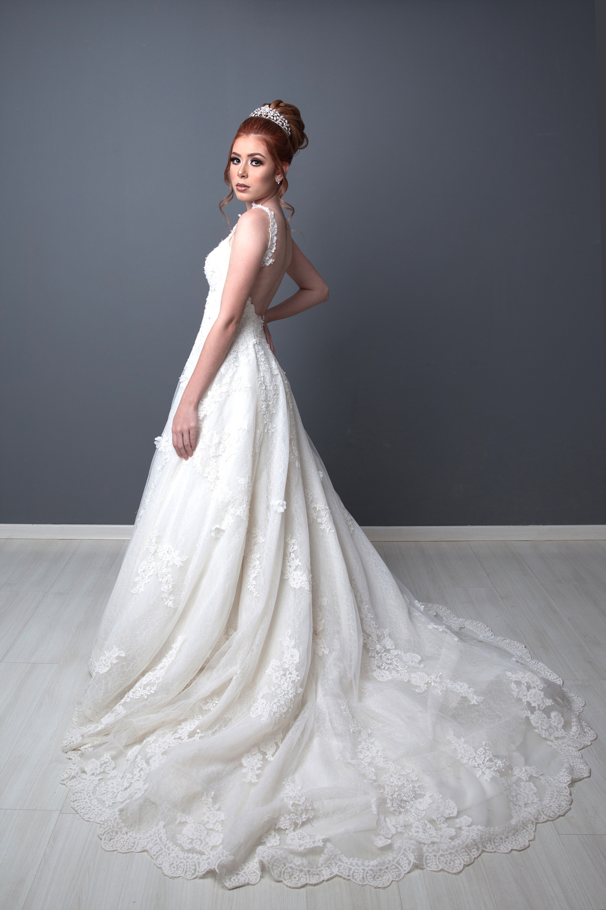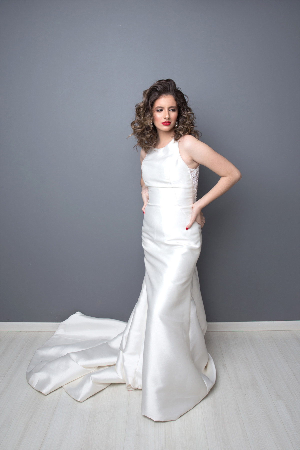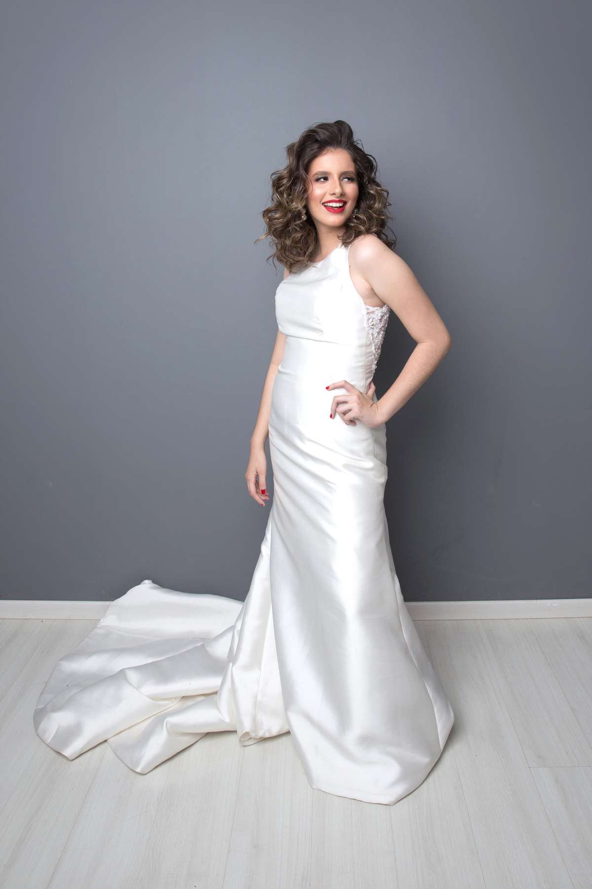 Nossa segunda noiva, escolhemos um vestido com uma modelagem moderna e bem ajustado ao corpo é bastante charmoso.