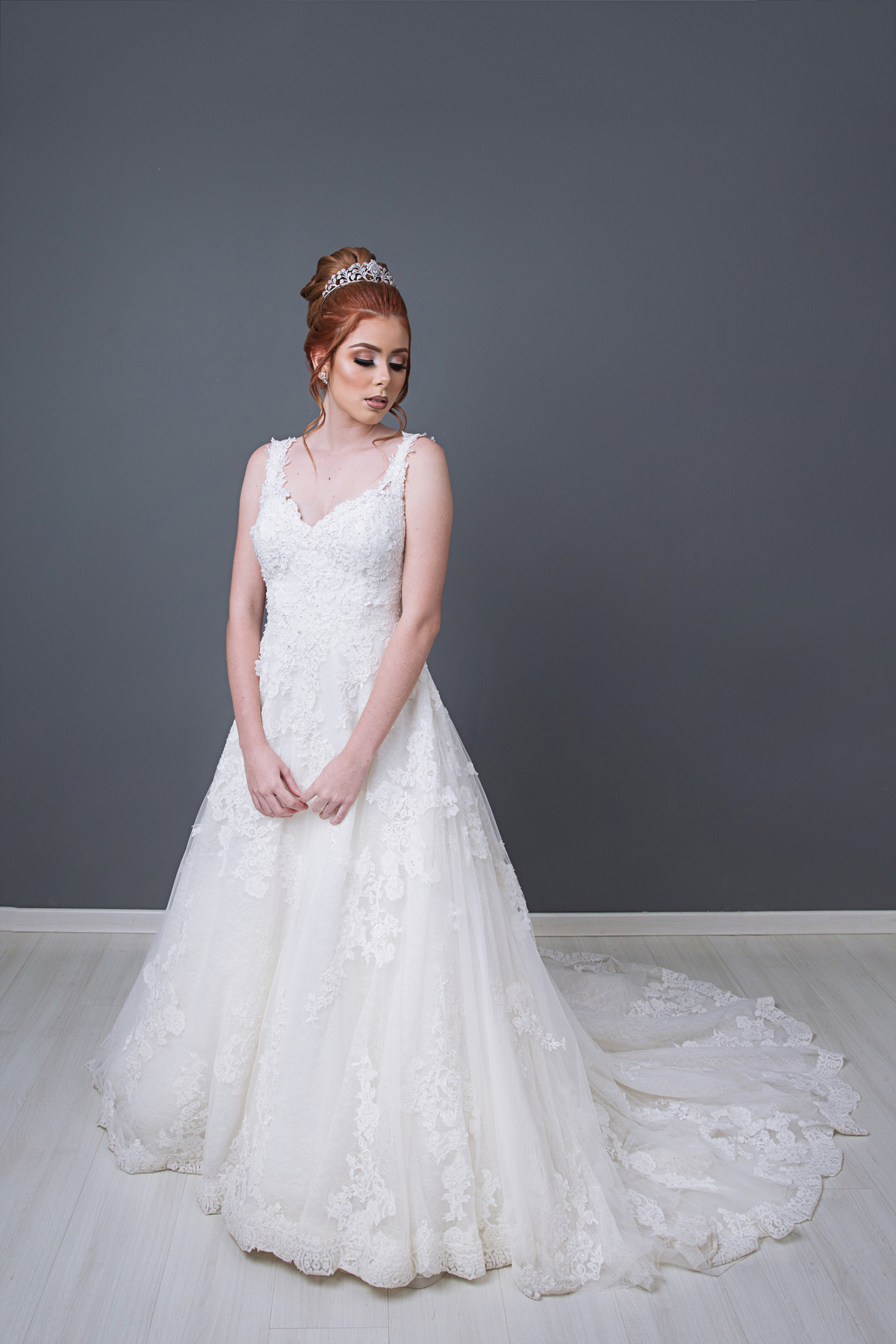 Nossa escolha foi, uma noiva tradicional vestido estilo princesa .(nunca sai de moda )