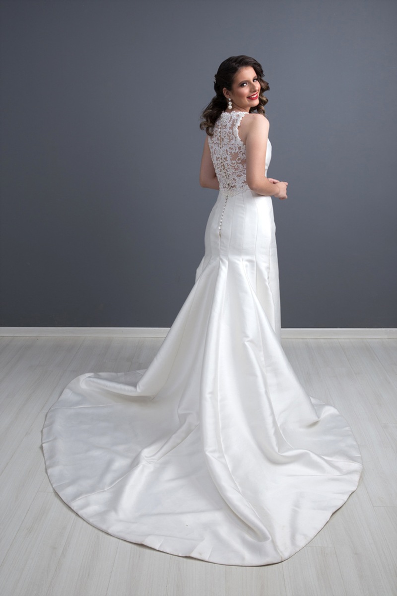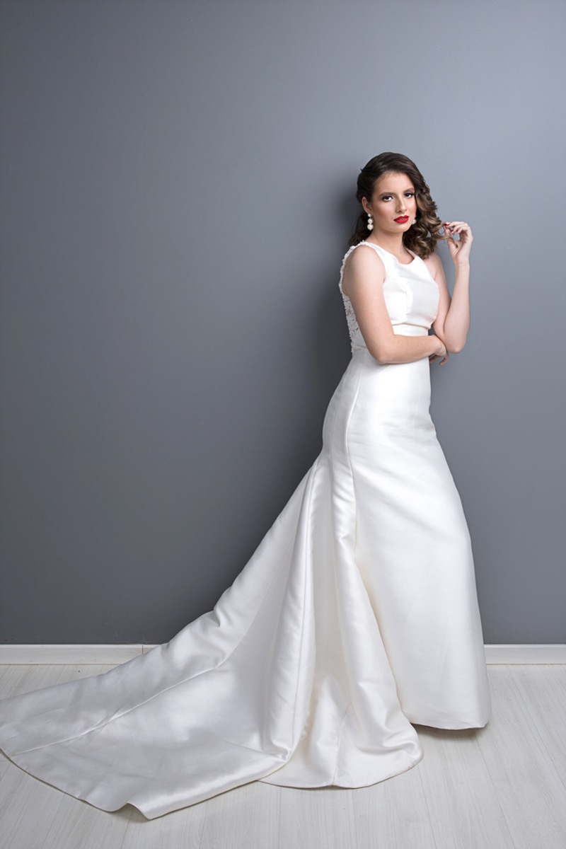 Nossa segunda noiva, escolhemos um vestido com uma modelagem moderna e bem ajustado ao corpo é bastante charmoso.